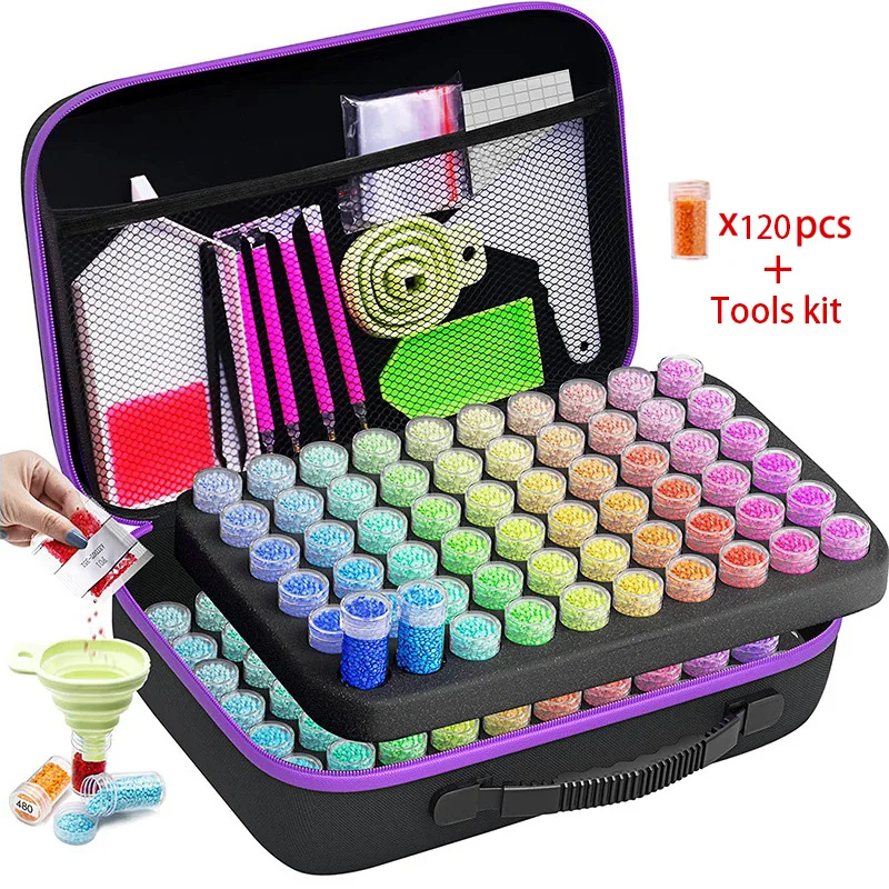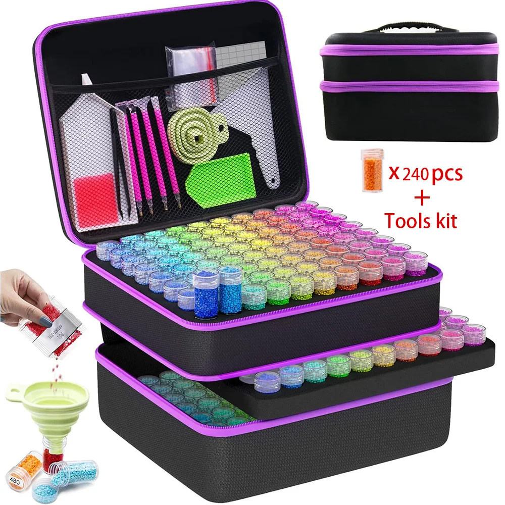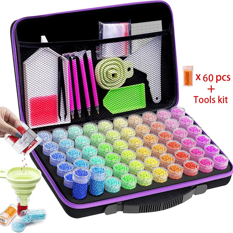 HOMFUN 60/120/240 Grids Diamond Painting Bead Storage Boxes Large Capacity Set With Accessories Mosaic Container Bag Tool Kit