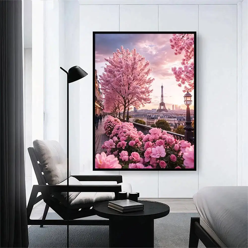 Momoart Street Diamond Mosaic Tree Flower Landscape DIY Acrylic Craft Supplies Diamond Painting Eiffel Tower Child Gift